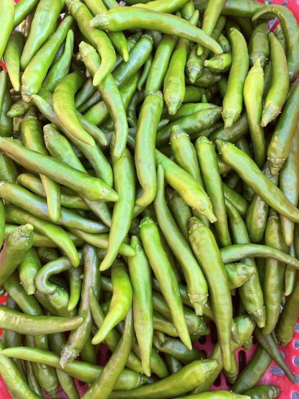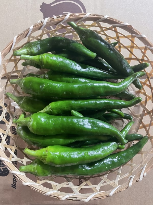 青唐辛子は栽培序盤(こちらでは6月〜8月初旬まで)はストレスが少なく辛くないのが多いです。ご了承の上ご購入いただければと思います。